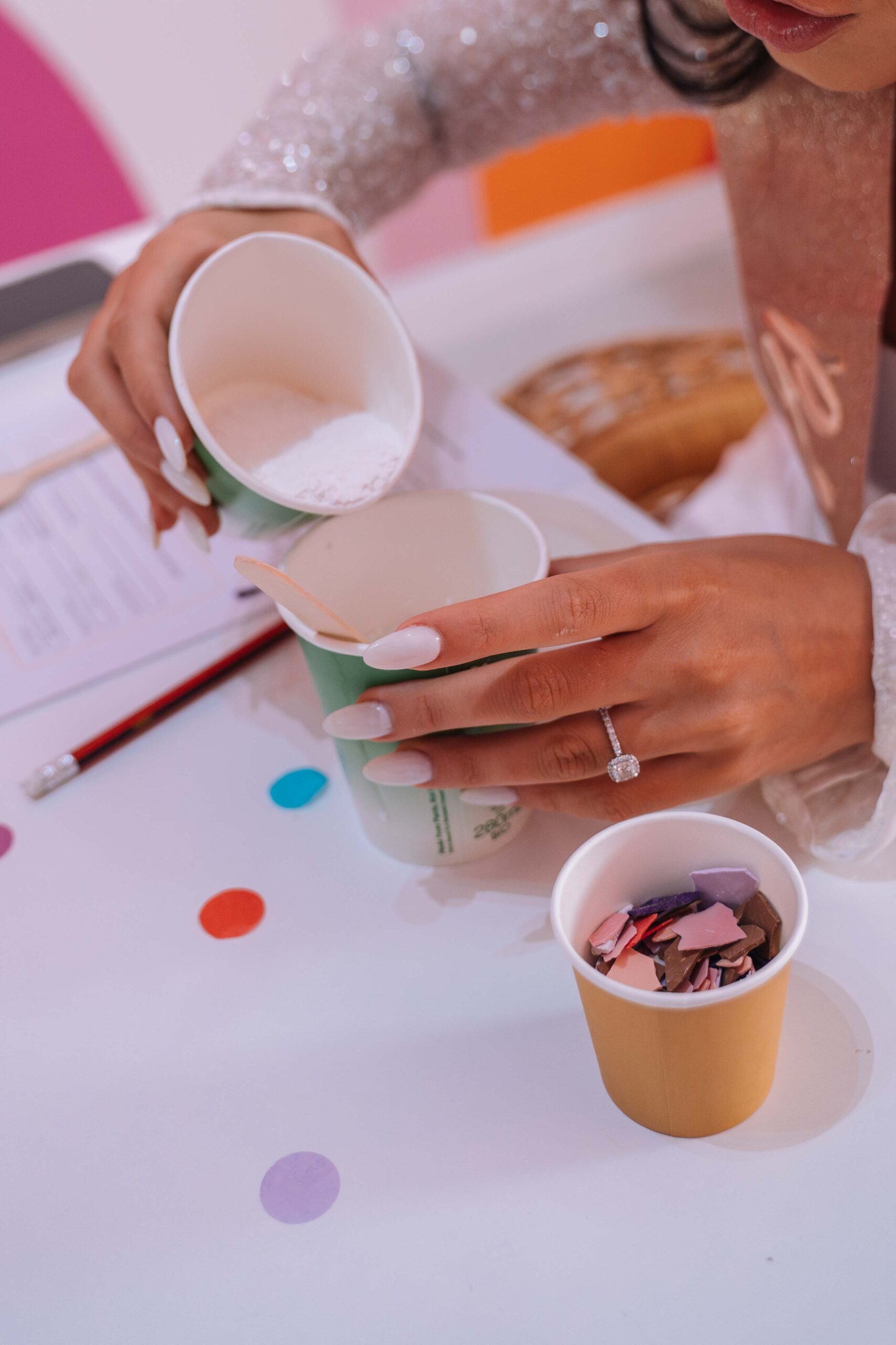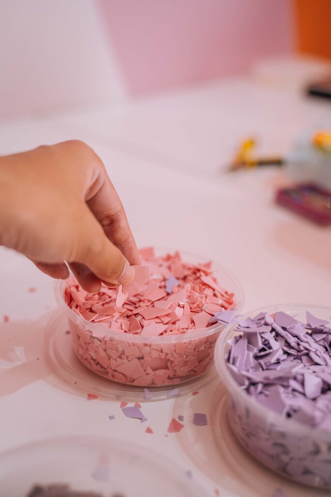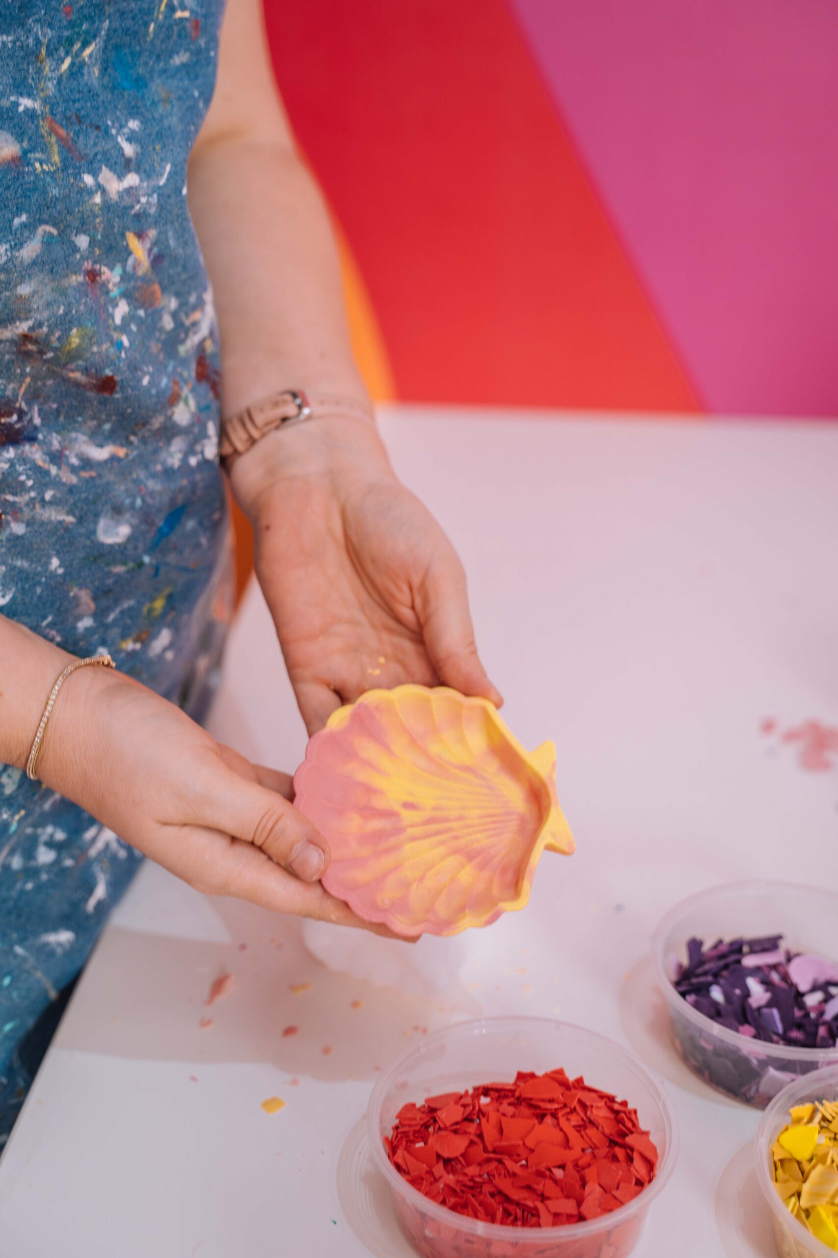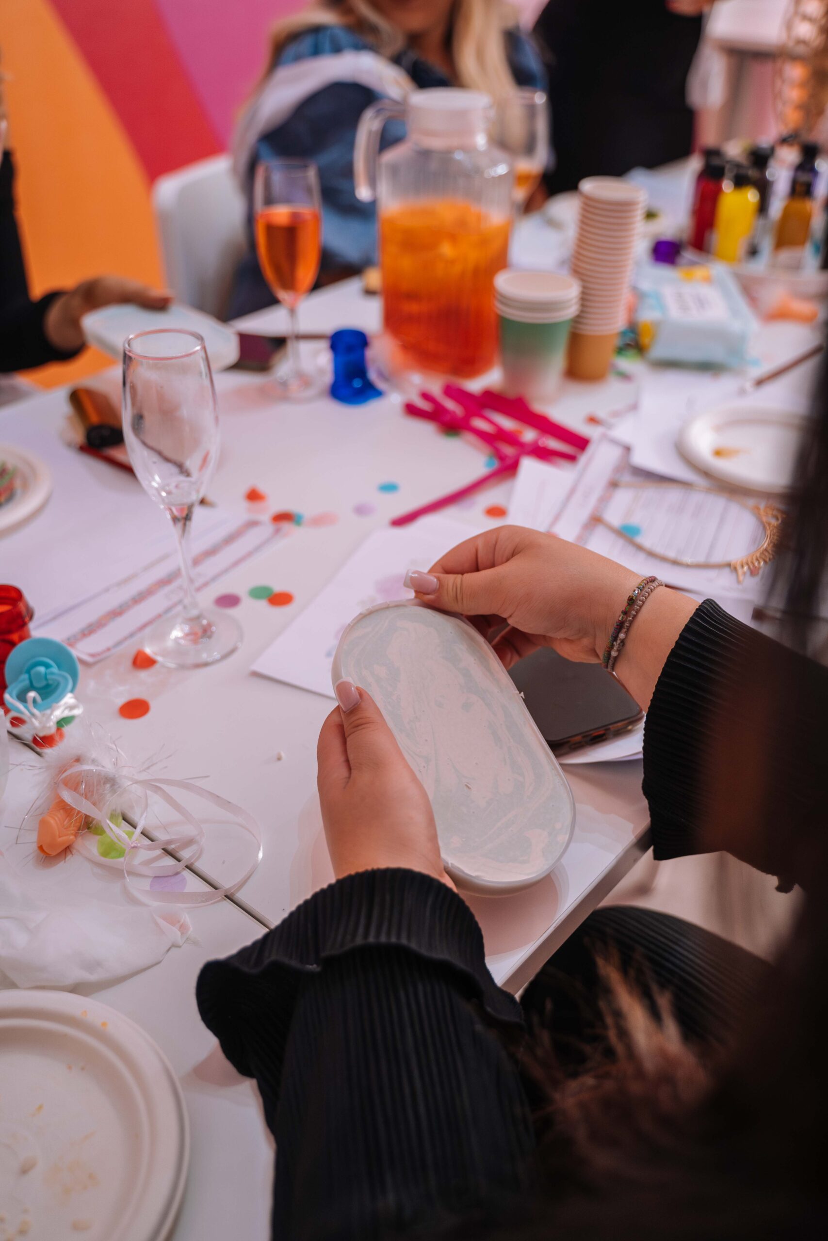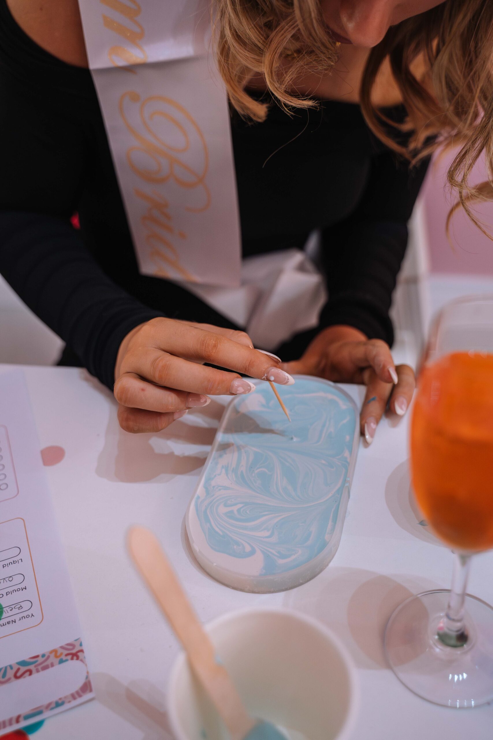 - Wear clothes you don’t mind getting messy. Jesmonite pigments are permanent and can stain fabric, so we recommend wearing something casual. Aprons are provided, but it’s always better to be safe!