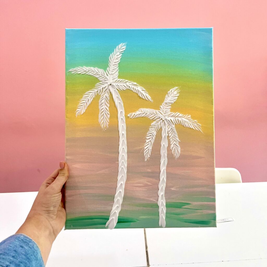 Our Textured Palm Tree Painting Class is a guided, beginner-friendly workshop where you’ll learn how to create your own stunning palm tree scene – no painting experience needed.