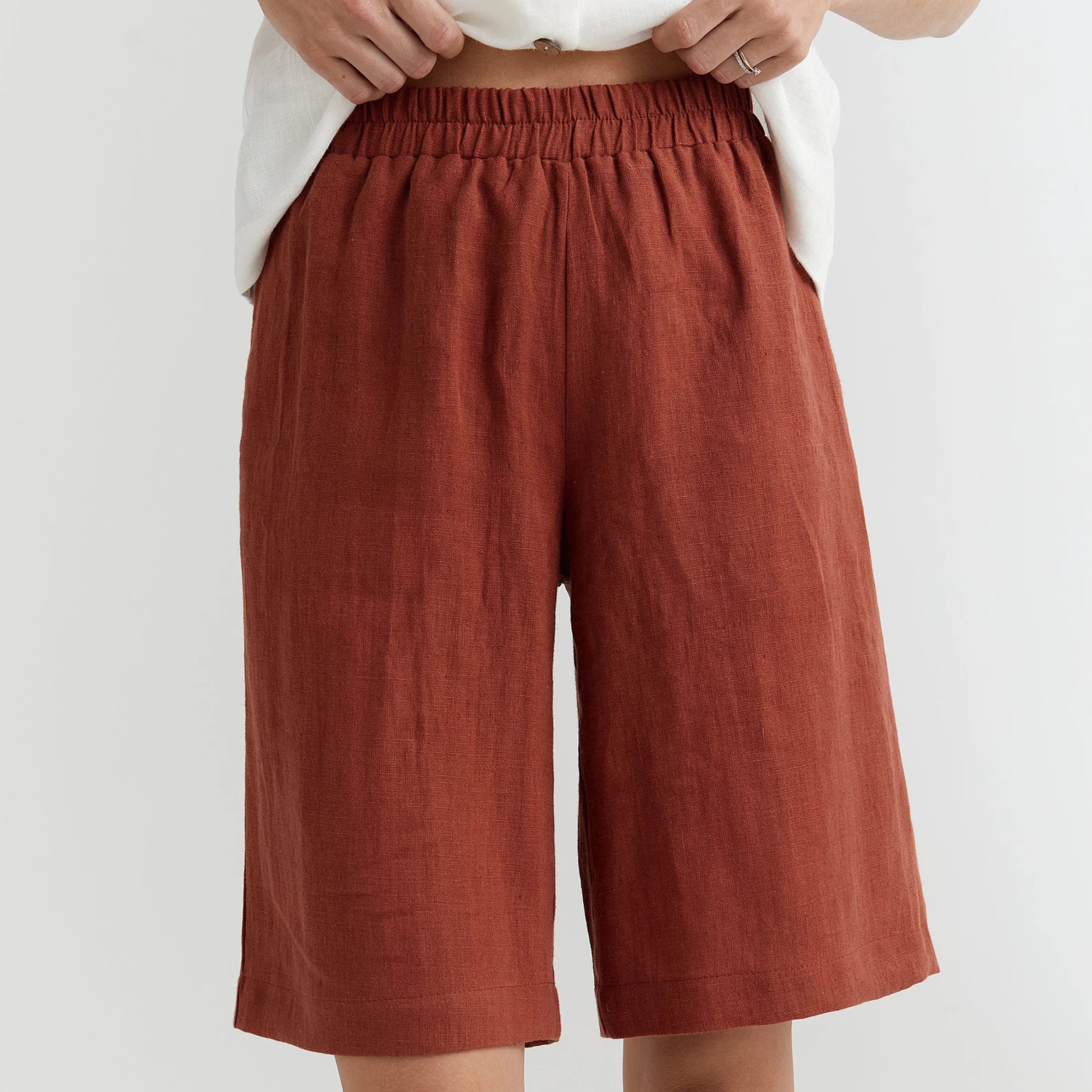 Project: A pair of elastic waist shorts or pants in your choice of length: Short shorts, Bermuda, Knee-length, Ankle-length or Full-length pants.